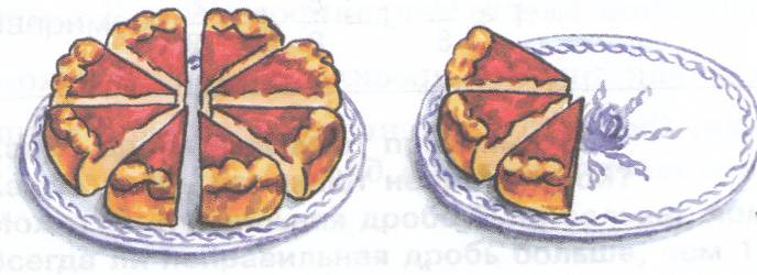 Пример: 2) Приведите свои примерыпо три смешанных числа, прочитайте соседу и пусть он их запишет. 3) Запишите своё число: целая часть пусть будет годвашего рождения, а в дробной части числитель – порядковый номер месяца, а знаменатель – число рождения. Сменить деятельность, обеспечить эмоциональную разгрузку учащихся. Давайте немного передохнем. Поднимает руки класс – это «раз». Перевод из неправильной дроби в смешанное число А встречались ли нам с вами неправильные дроби в начале урока? А как вы думаете, что с ними можно сделать? Чему мы должны научиться? Что показано на рисунке? На сколько частей разделили торт? Сколько частей взяли? Представьте в виде дроби.
