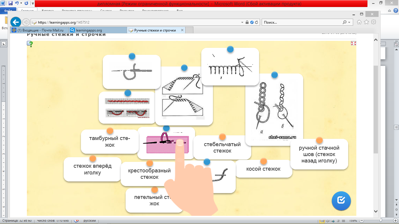 рисунок 17 (прием Кластер: «Виды простейших швов»)