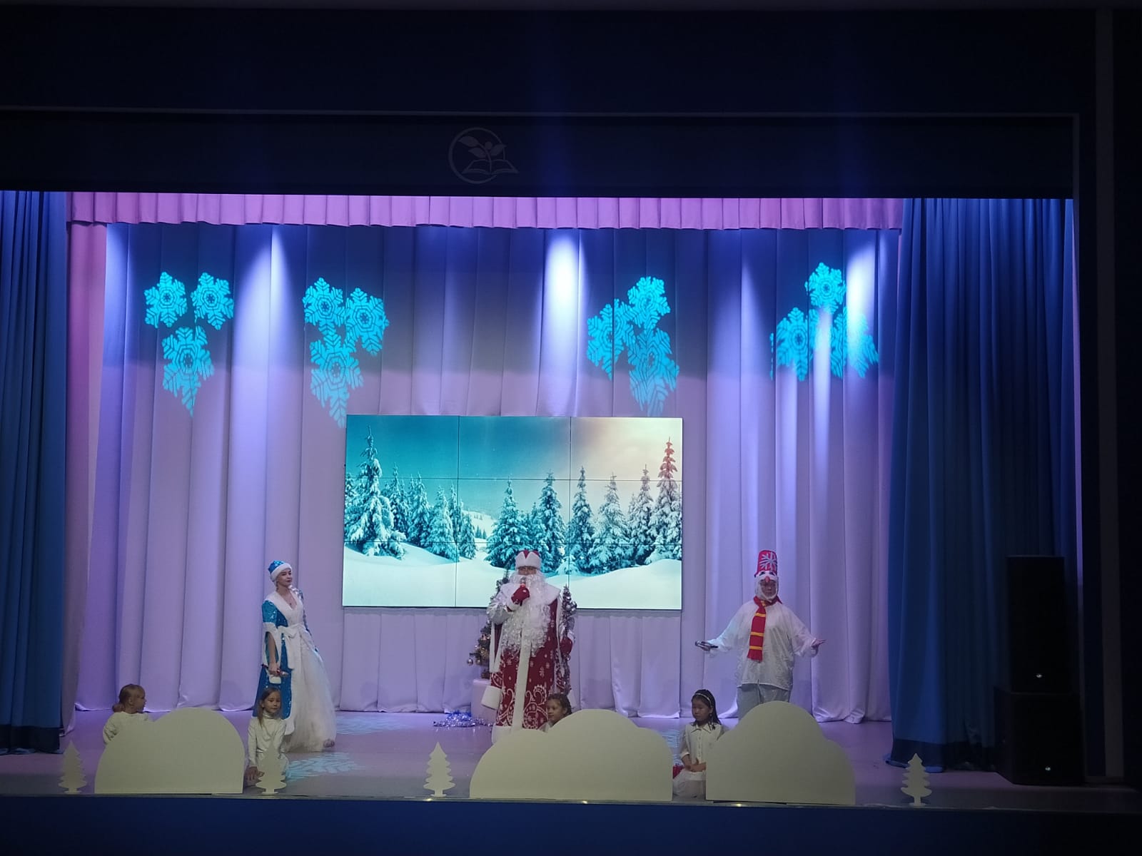 Снегурочка: Здравствуйте ребята, здравствуйте сугробики.