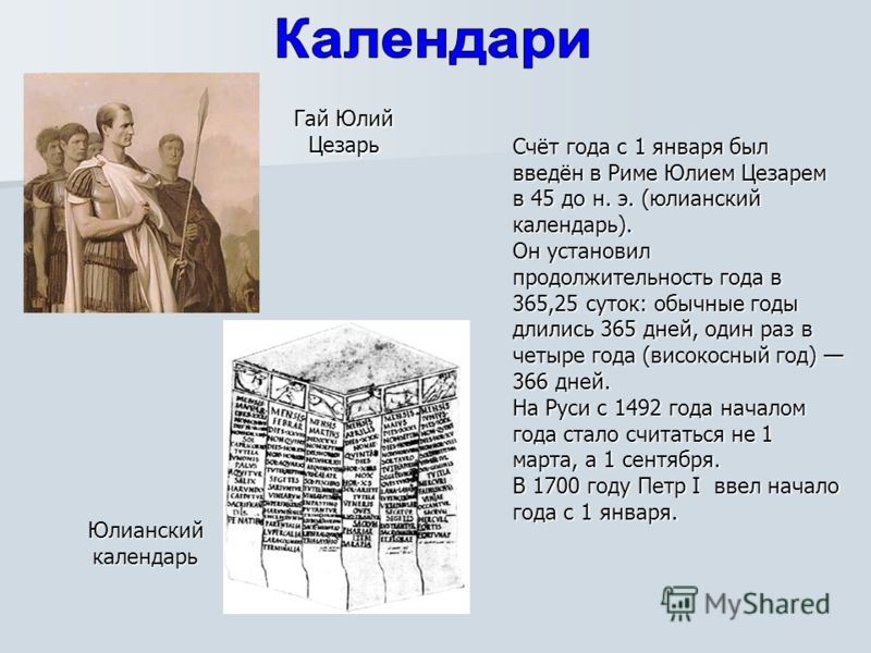 Римский календарь: В 46 году до н.э. Юлий Цезарь ввел Юлианский календарь, который устанавливал 1 января как начало нового года. Это решение было принято для упрощения расчетов времени и синхронизации календаря с солнечным годом.