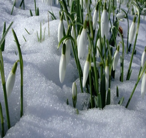Как только с полей и лесных полян сходит снег, на полянах начинает пробиваться из-под старых листьев зеленая трава, появляются подснежники. Природа пробуждается.