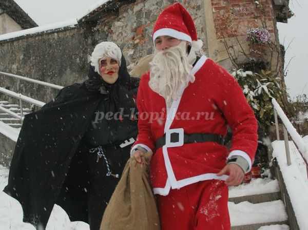 Имя это дано ему не случайно: много лет назад он носил козлиную шкуру и развозил детям подарки верхом на маленьком козлике.