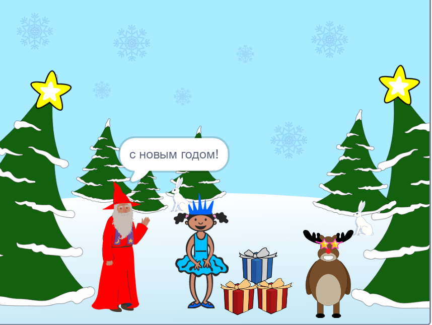 Конспект урока «Создаем новогодний мультфильм в среде Scratch 3»