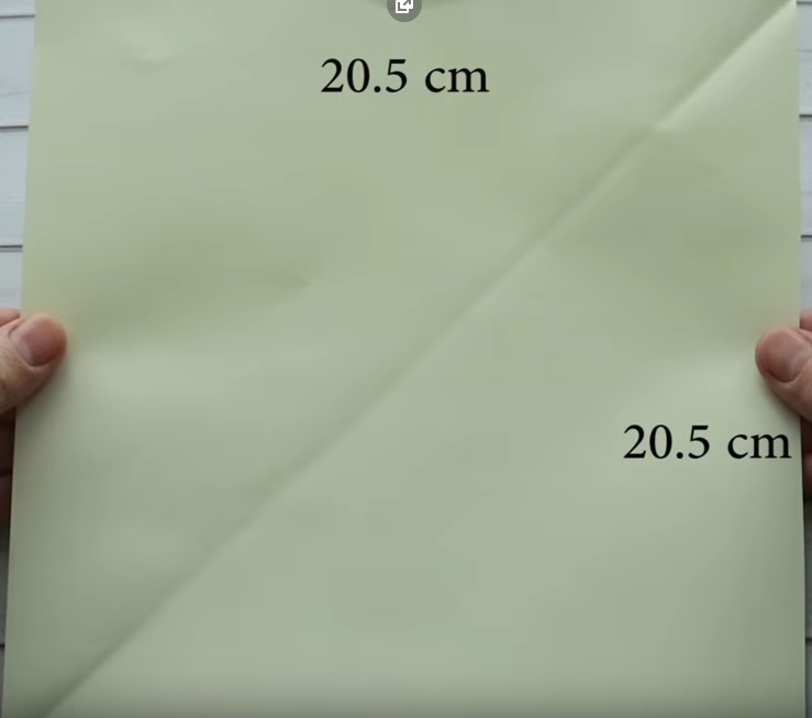 1. Из прямоугольного листа бумаги сделаем квадрат, для этого сложим его по диагонали, и отрежем лишнее.