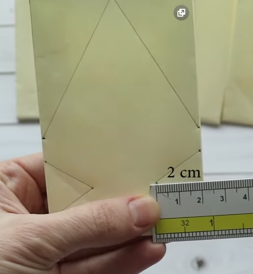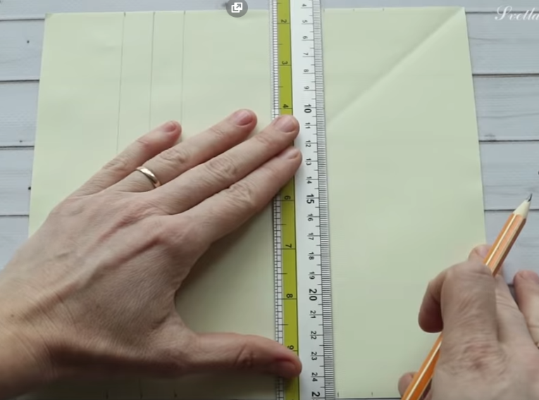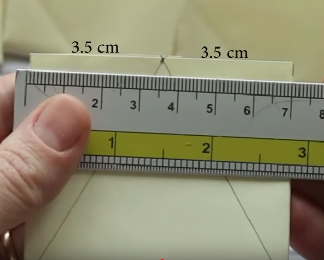 2. Берём линейку, карандаш и делаем разметку на квадрате который у нас получился сверху и снизу .