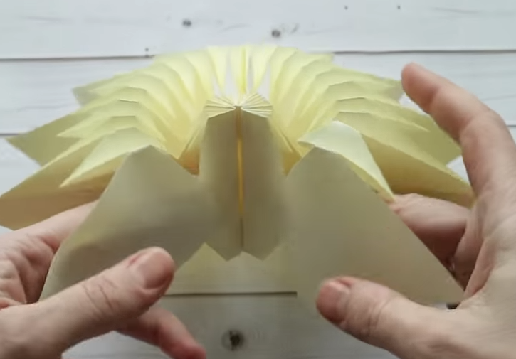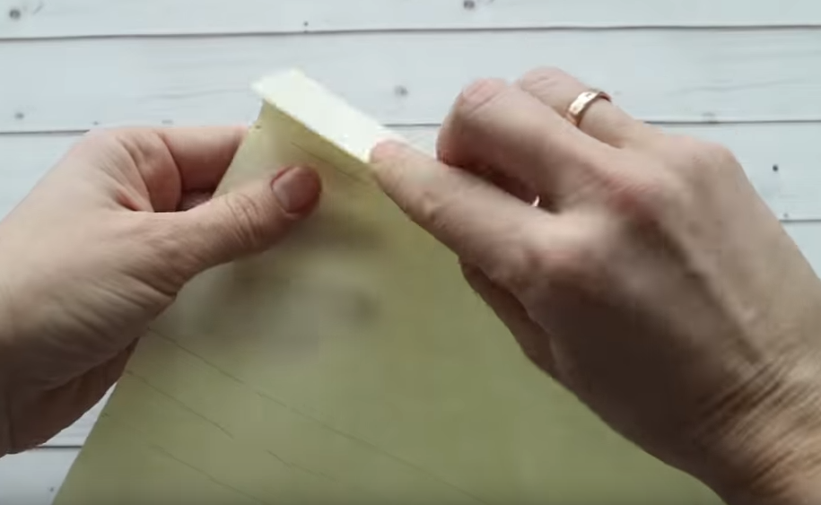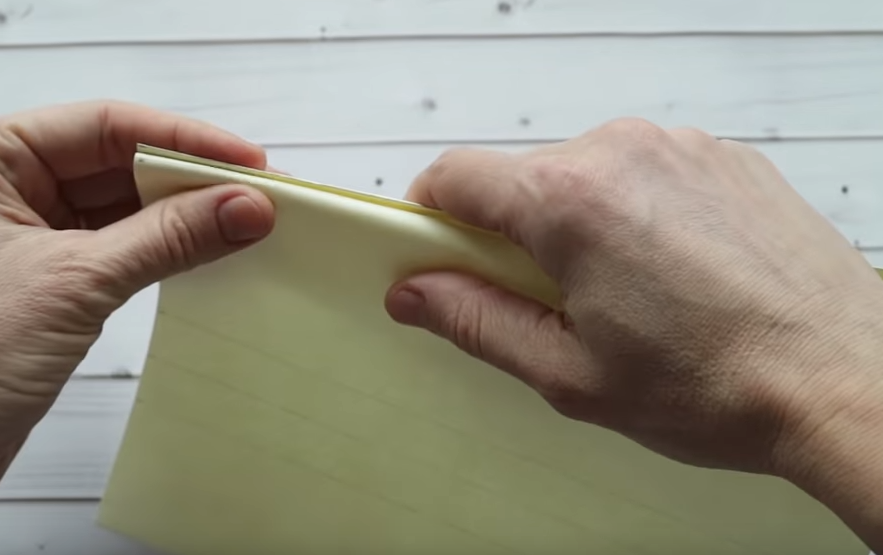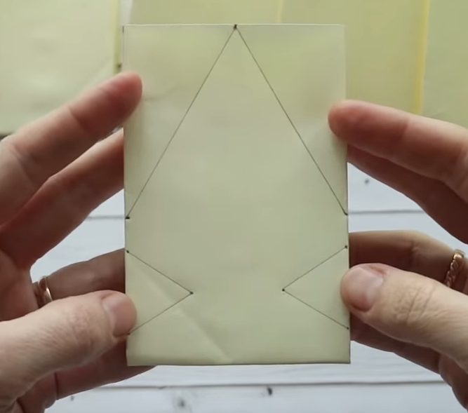 3.По намеченным линиям сгибаем бумагу: