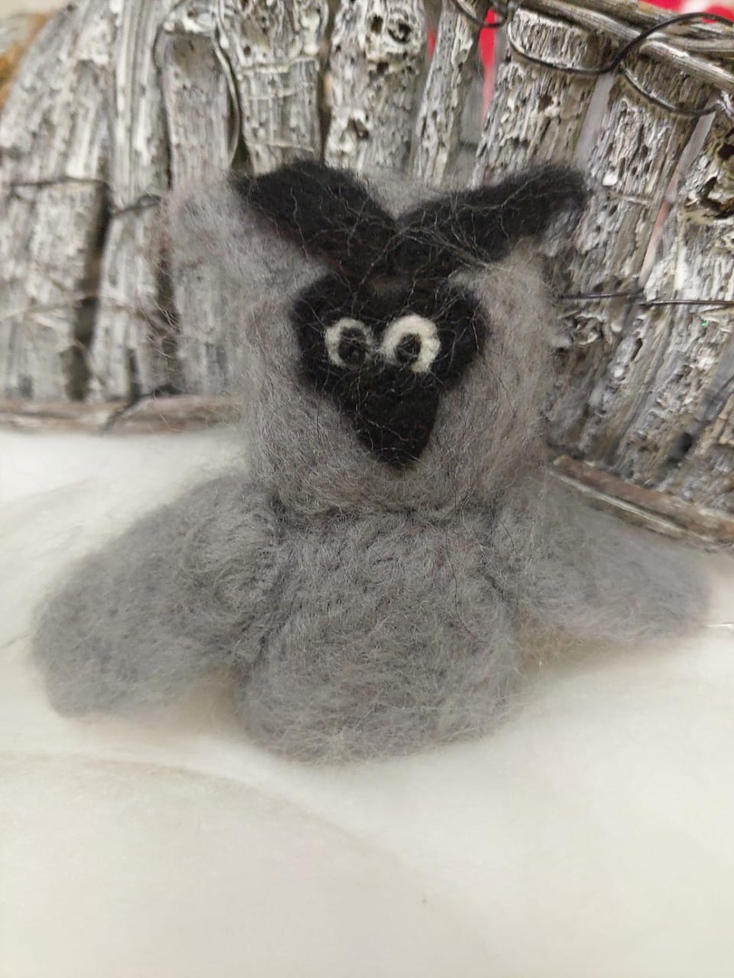 Берем еще две полосочки из шерсти.Формируем лапки и вваливаем к туловищу.