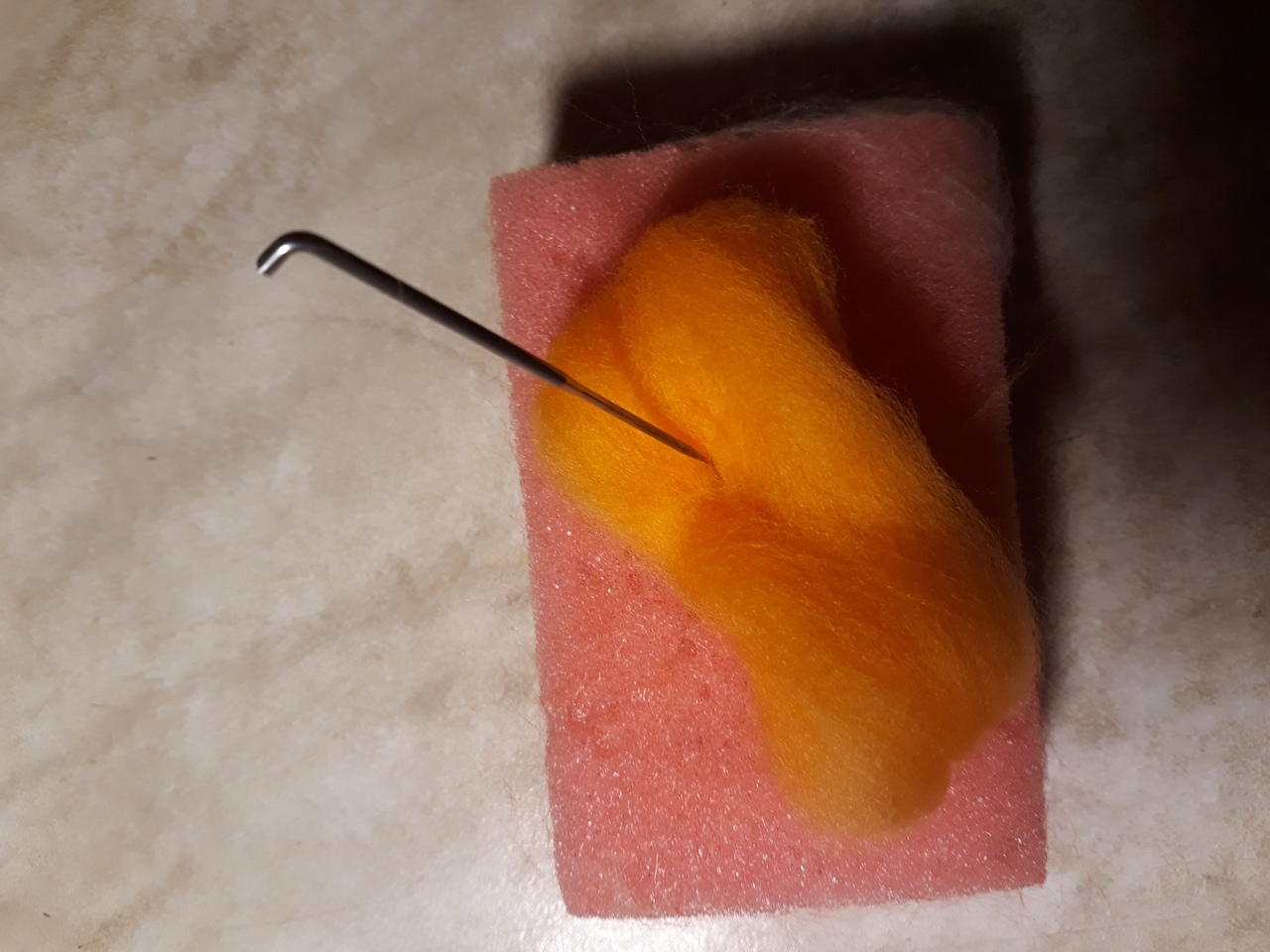 А так же нам банадобятся иголки для сухого валяния, синтепон и губка для мытья посуды.