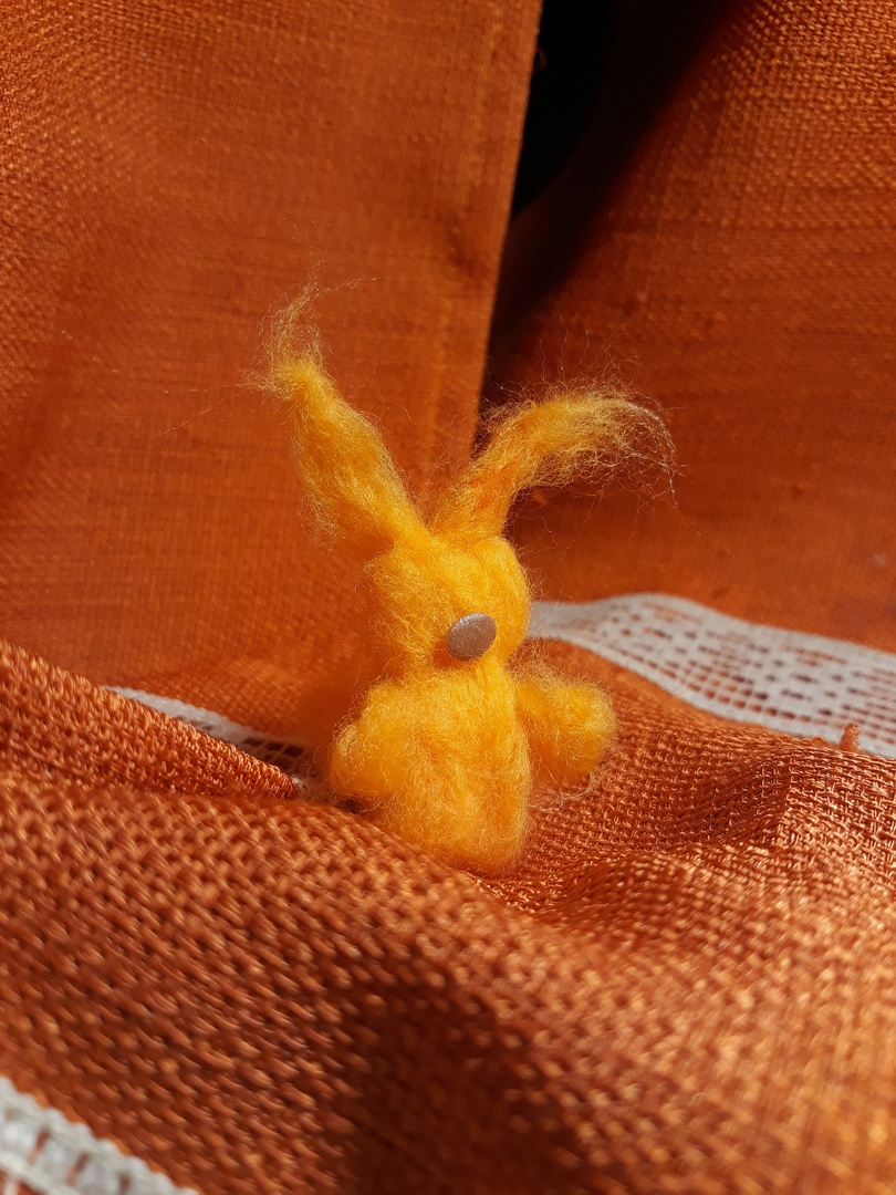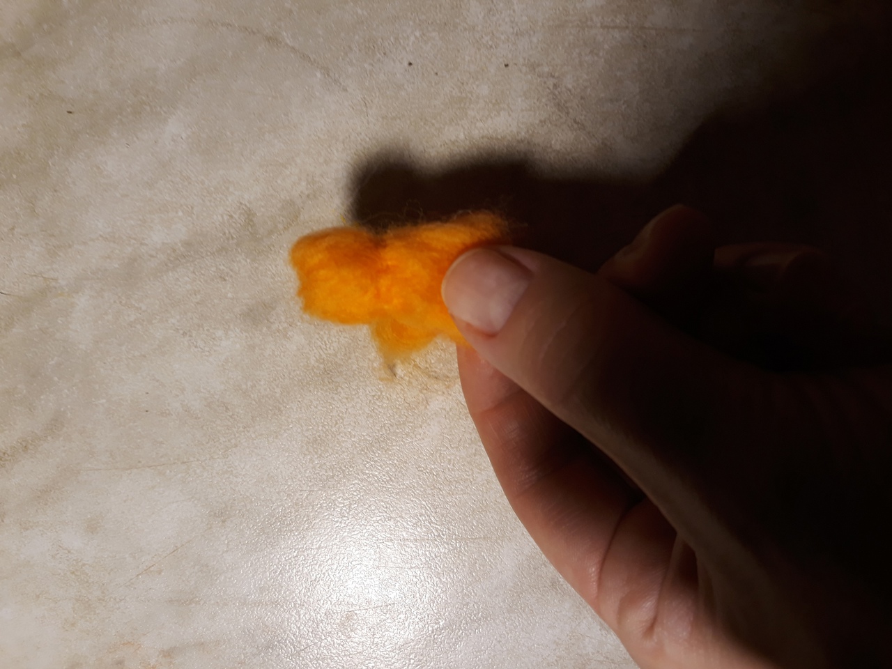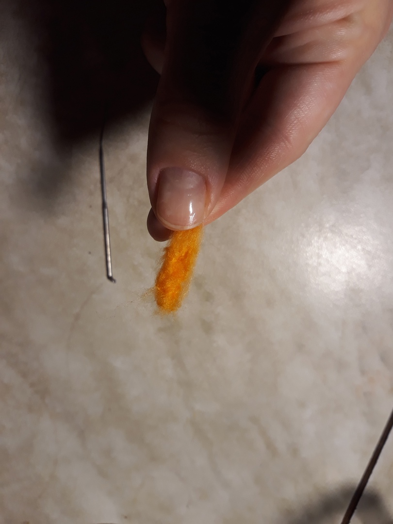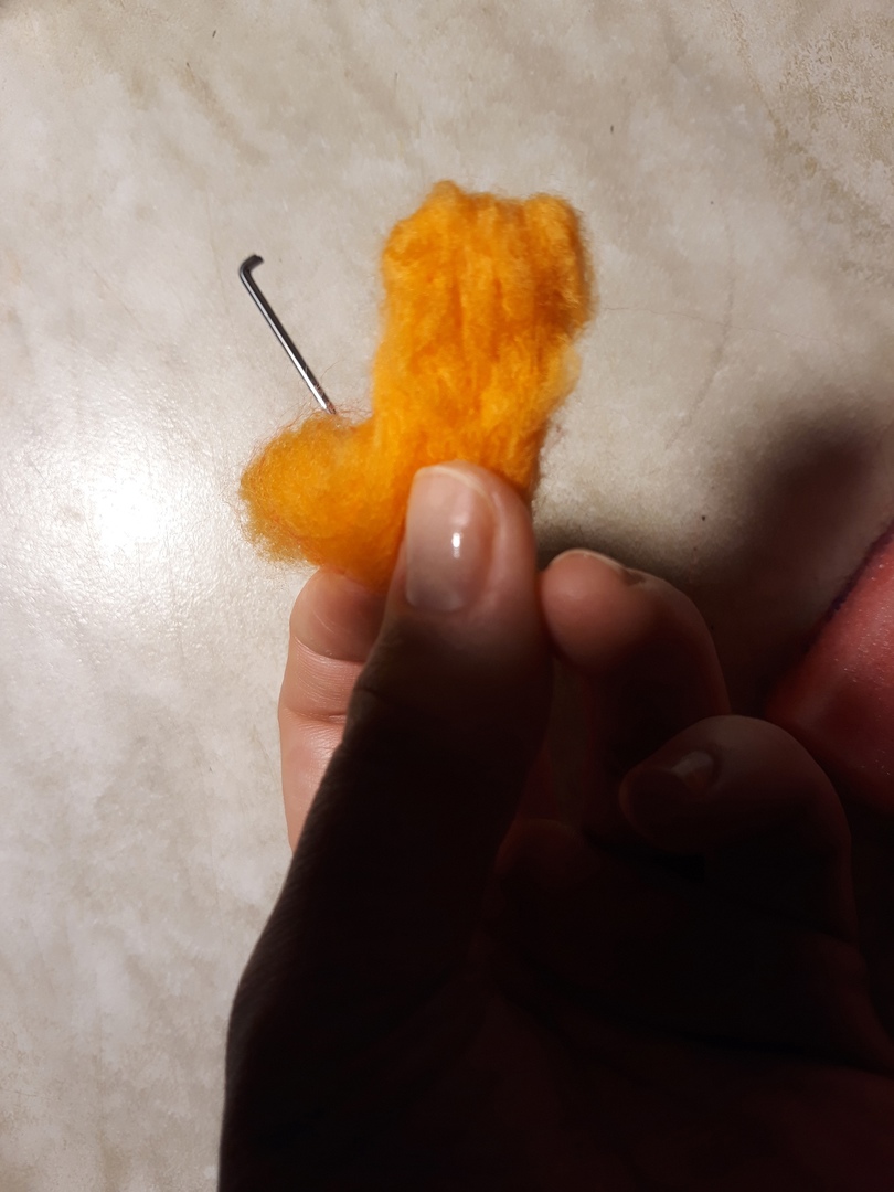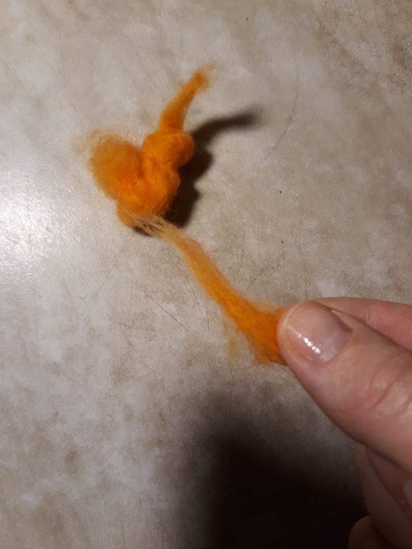 Берем небольшой кусочек рыжей шерсти.