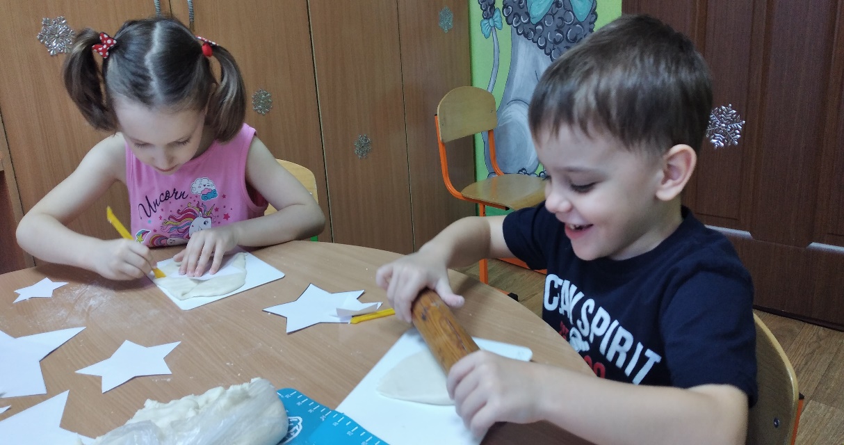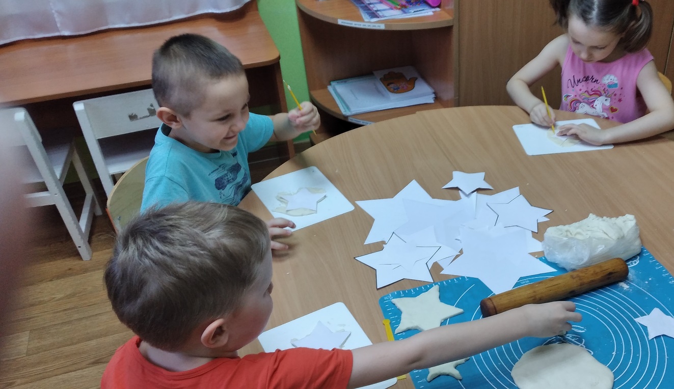 Цель: изготовление елочки из соленого теста по шаблонам-звезд.