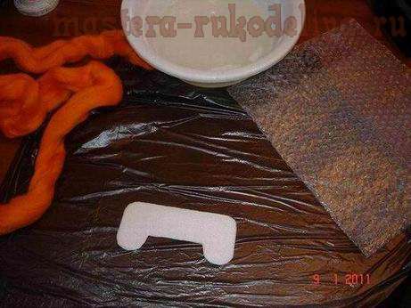 Фелтинг - это мокрое валяние шерсти. Основная хитрость состоит в том, что для облегчения перемешивания и взаимопроникновения волокон шерсти используют мыльный раствор, который значительно уменьшает трение между волосками, и под воздействием сжимающих и давящих движений ладоней волоски располагаются в толще материала так, как их ни за что не удалось бы расположить в слое войлока в сухом состоянии.