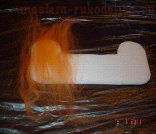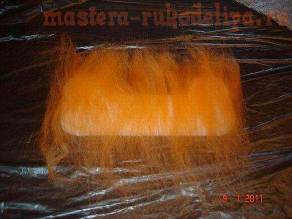 Снова выкладываем три слоя шерсти на заготовку по принципу: поперек – вдоль - поперек.