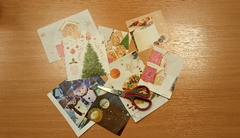 Из старых глянцевых журналов вырежем иллюстрации новогодней тематики.