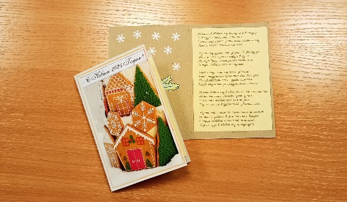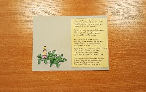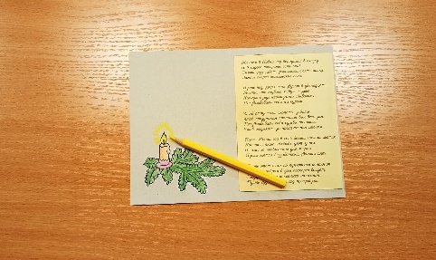 Лист картона сложим пополам и на правую внутреннюю сторону поместим новогодние стихи.
