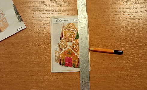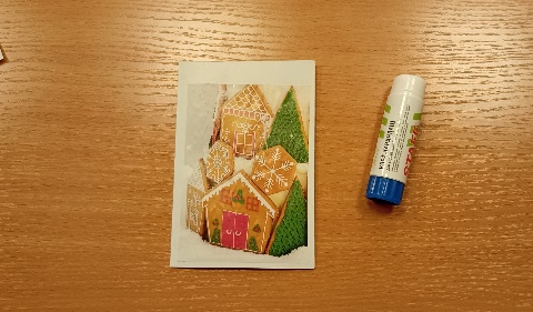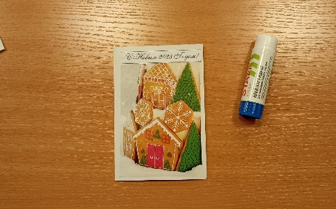 На титульную сторону открытки приклеим новогоднюю иллюстрацию