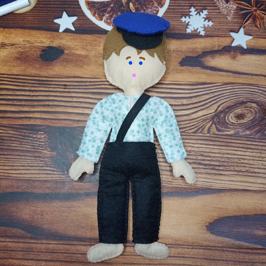 На следующем занятии дошьем куклу и будем его одевать. Сошьем одежду и фуражку. Закончим образ.
