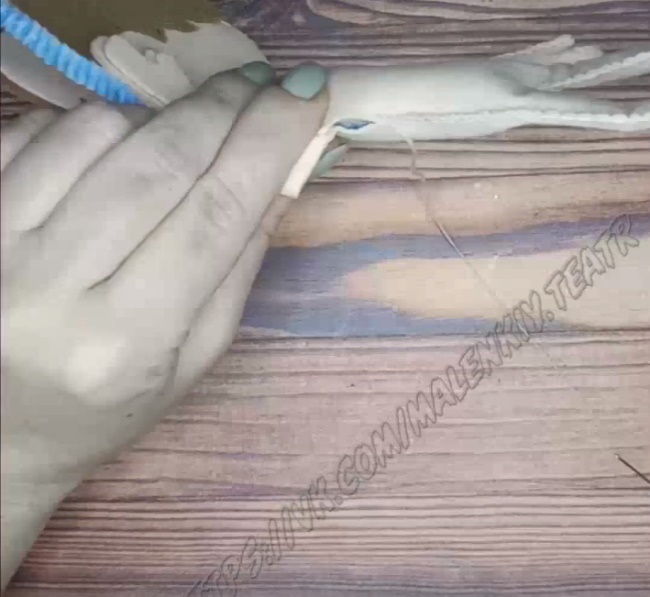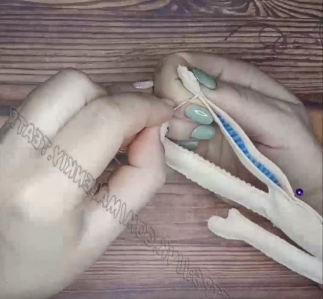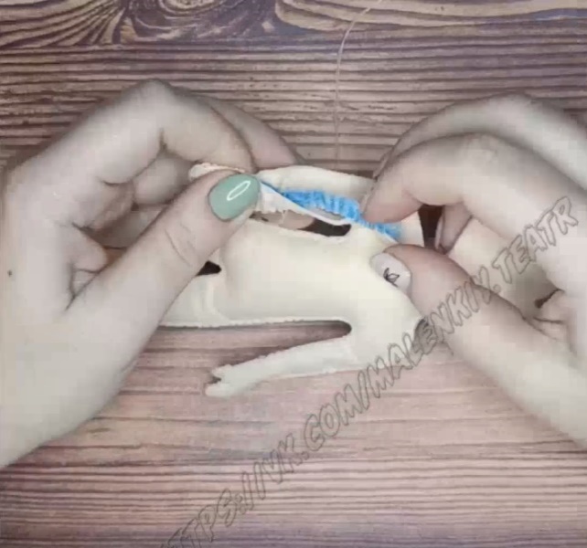 Для гибкости рук и ног используем синельную проволоку. Туловище набить сентипухом. Проволоку и сентипух вкладываем в процессе прошивания.