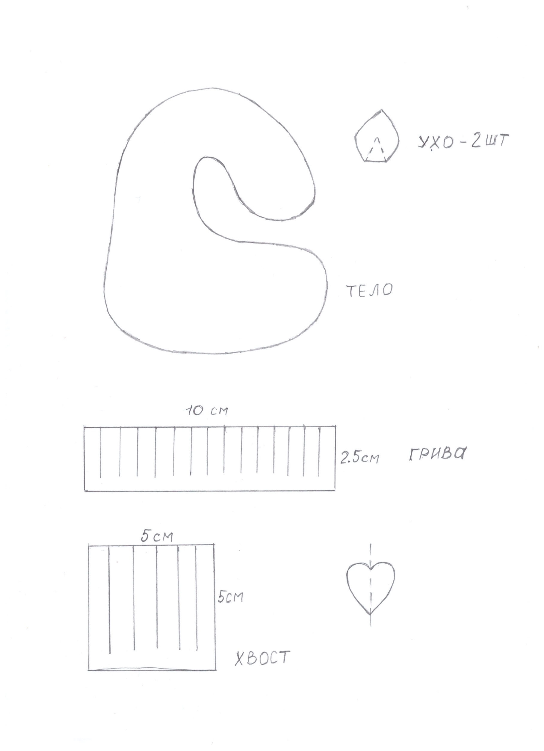 1. Шаблоны деталей лошадки: тело, грива, хвост, ушки, глазки.