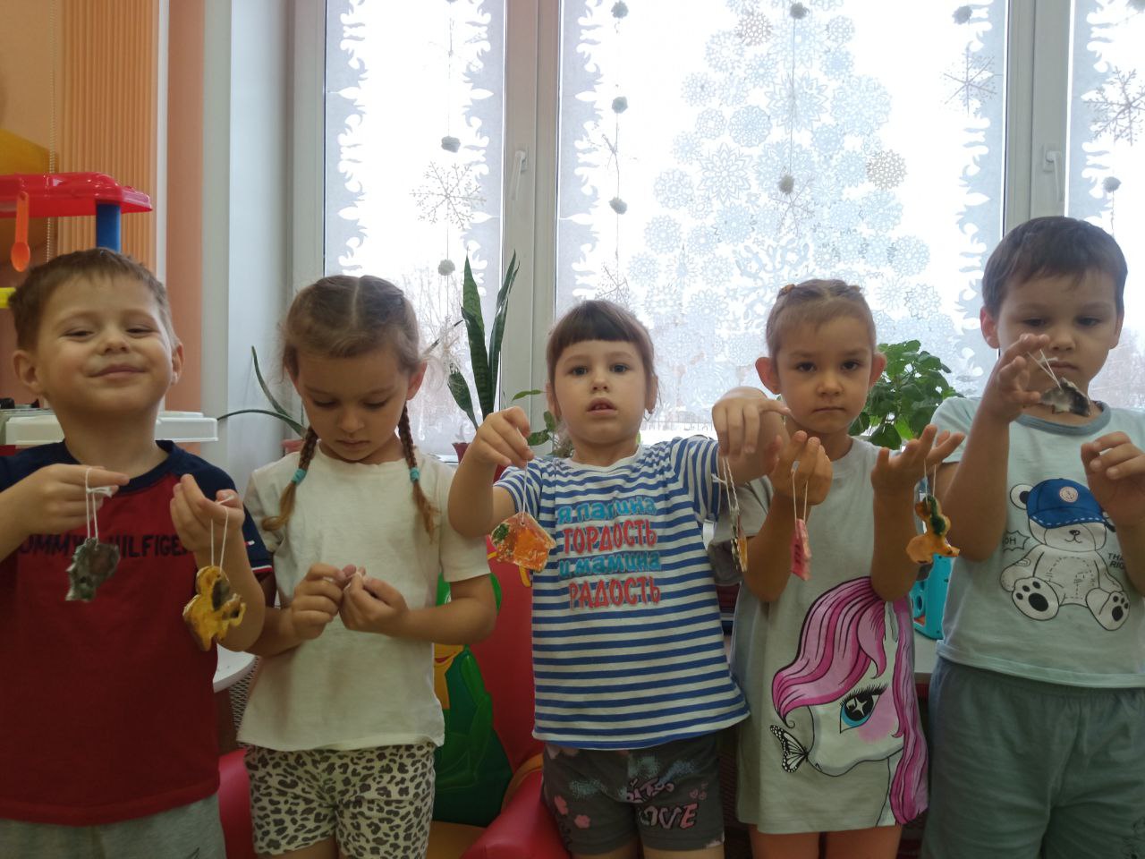 Воспитатель: Когда наши игрушки высохнут ,мы раскрасим их красками ,в дырочки проденем ленточки и украсим ёлочку. Остальные игрушки отнесём домой ,и украсим свою домашнюю ёлочку.
