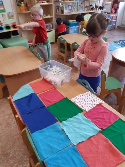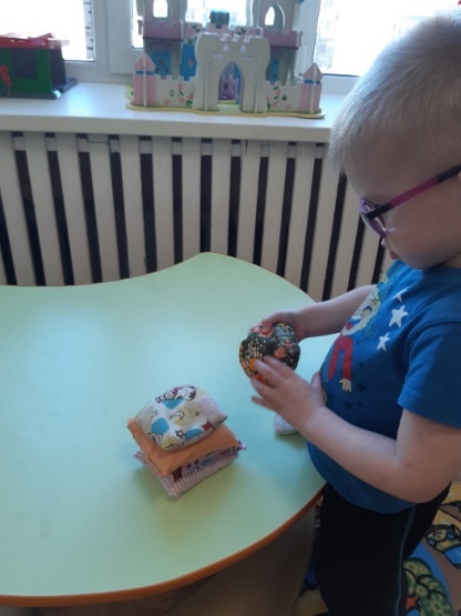 -Игры с тактильными мешочками и тканью.
