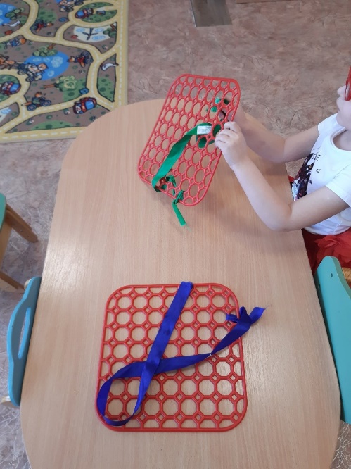 - Шнурование. Потребуется кусок линолеума с проделанными отверстиями и шнурок (игра "Шнуровки").