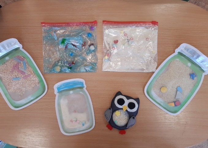 -Игры с сенсорными пакетами (герметичные пакеты, наполненные разными крупами, гелем и мелкими игрушками).