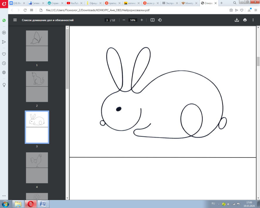 Ученику необходимо нарисовать рисунок двумя руками. Очень важно не давить на него. Ученик показывает хороший результат, если у него получается на 30-40-50 %. Это тот уровень, на котором нужно поддерживать достигнутый результат.