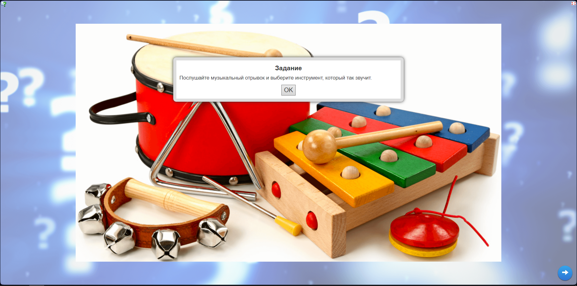 Данный тест необходим не только для закрепления знаний о внешнем виде и названии инструмента, но и для запоминания звучания различных инструментов, способности различать их и соотносить между собой, используя одно из самых важных и восприимчивых органов чувств – слух. При прослушивании записи дети учатся концентрировать свое внимание на звуках; при выборе варианта ответов тренируют свою память и образное мышление. При необходимости прослушивание записи и выбор варианта ответа могут быть неоднократными.