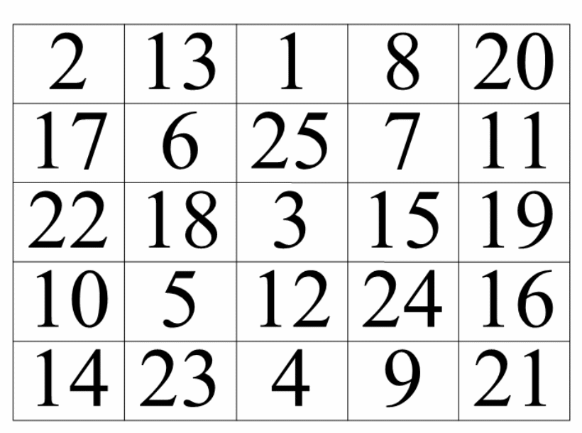 Таблицы Шульте — это очень распространенный метод диагностики внимания, его устойчивости, объёма и распределения между объектами.