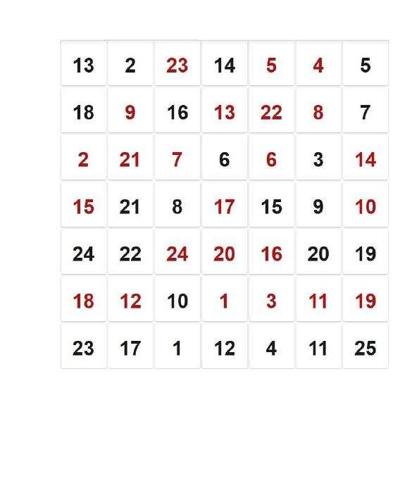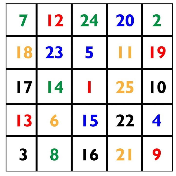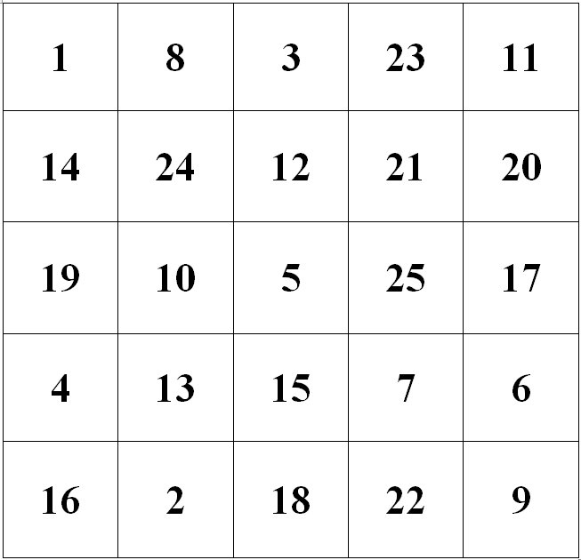 В классическом виде таблица представляет собой квадратное поле 5х5 ячеек, в каждой из которых располагается число.