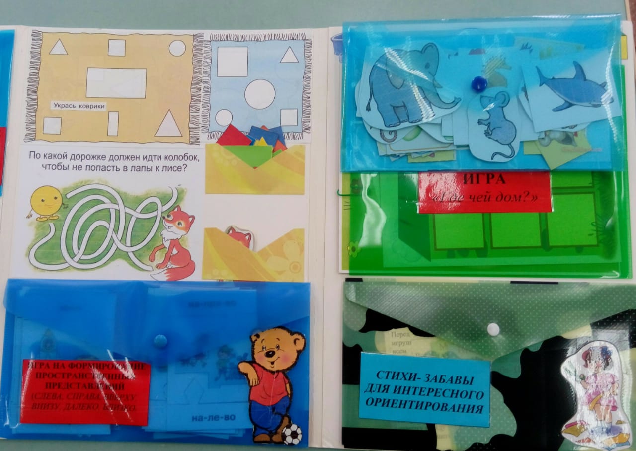 Лэпбук оформлен в виде папки с шестью разворотами, в нем представлены дидактические игры, картотеки малоподвижных игр, игровые упражнения и задания, задания – схемы для многократного использования, направленные на развитие пространственного мышления у детей младшего дошкольного возраста.