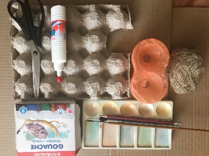 Подготовка материалов и оборудования:ненужных картонных коробок,картонных упаковок для яиц, веревочек, ножниц, клея, воды, гуаши, кистей больших «белка» или «пони» и тоненьких-синтетика.
