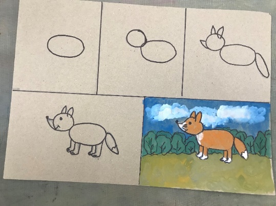 - изучить технологические карты по прорисовке животного, обращая внимание на то, как можно разбить фигуру животного на несколько простых форм – овалов (голова, туловище, конечности, хвост).