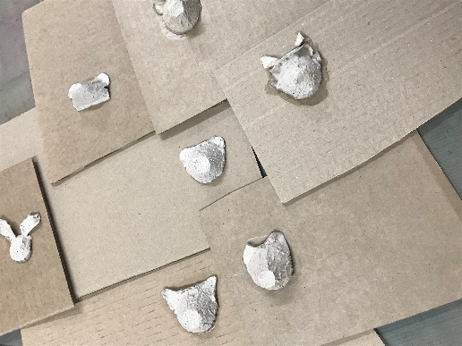 - вырезать формочку морды животного и закрепить ее на картонке;