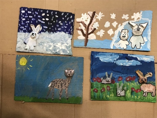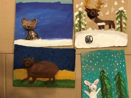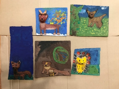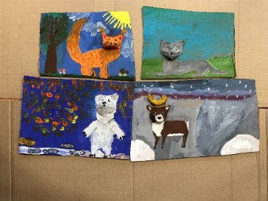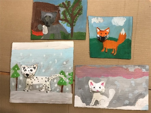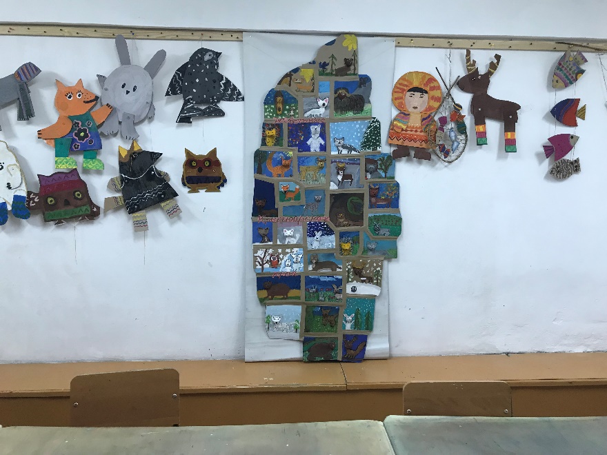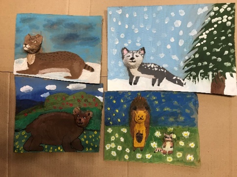 Тургунова София 7 лет Лубкина алина 9 лет Поздеева Ангелина 11 лет Колесникова Вероника 8 лет | Василенко Милена 9 лет Рыбальченко Нина 6 лет Василенко Милена 9 лет Черкасова Диана 9 лет | Создание панно-композиции «Животные Красноярского края». |