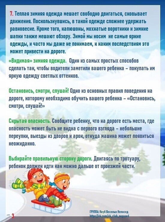 знание детьми о безопасном поведении зимой во время прогулок;