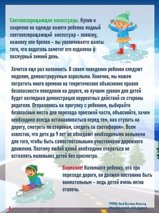 Консультации для родителей: «Безопасность зимой», «Правила безовасной прогулки», «Безопасное катание на горках», «Правила безопасного поведения при гололёде», «Правила безопасного поведения на льду», «Первая помощь при обморожении и переохлаждении», «Безопасность при катании на санках».