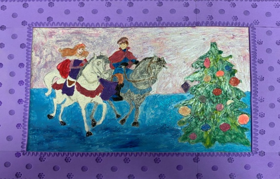 Рис.1. Работа в технике рисования пластилином «Дорога в Новый год»