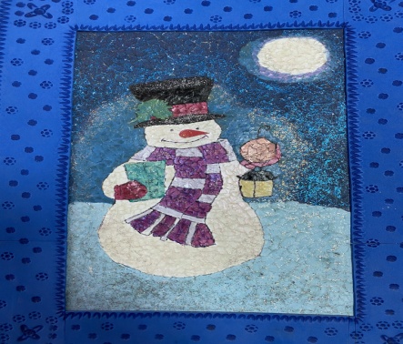 Рис.7. Работа в технике «Отрывная аппликация» «Снеговик в зимнем лесу»