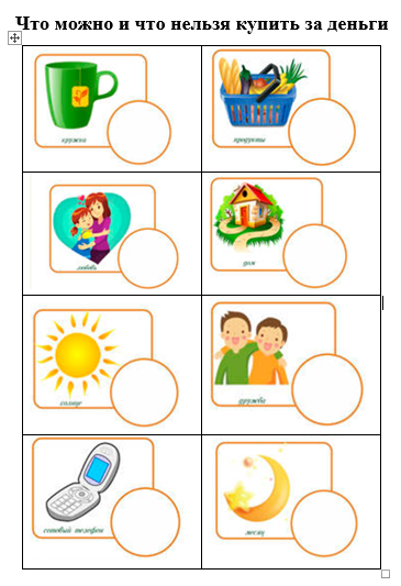 Ставится перед детьми образовательная задача, где два ребенка поставили перед собой цель: купить журнал с наклейками. Для этого решили не тратить деньги, которые родители давали на карманные расходы, а копить их. Одна девочка старательно откладывала деньги, а другая тратила на конфеты. Прошло время, та девочка, что откладывала, купила журнал. Другая осталась без журнала и очень грустила.
