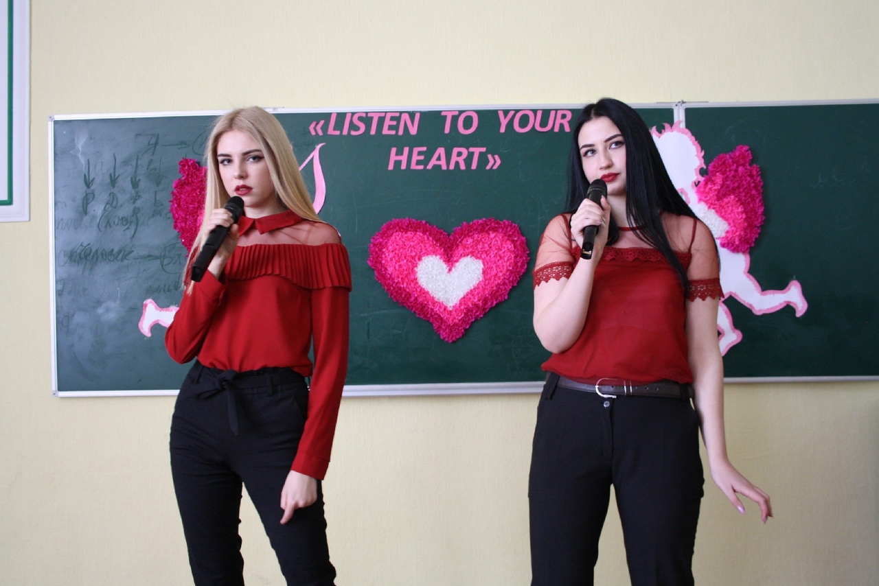 Ведущий 2: You are invited into the world of romantic poetry, songs, dances and love lyrics, which is called «Listen to your heart».