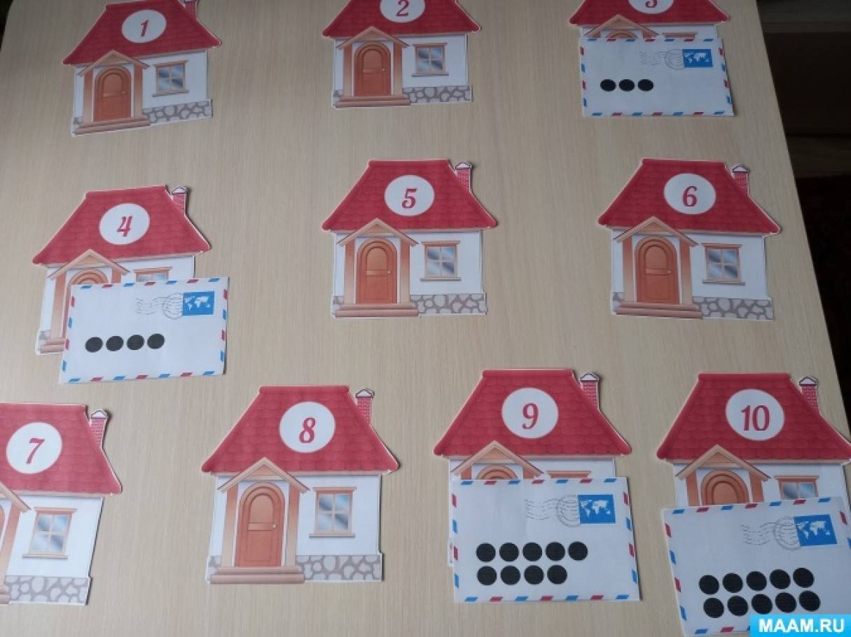 Оборудование: книга с иллюстрациями С.Я. Маршака «Кошкин дом», атрибуты к заданиям: домики с цифрами от 1 до 10, конверты с точками от 1 до 10; столы (красный-высокий, жёлтый пониже синий самый маленький), персонажи- кот Василий, кошка, петух. Курица, козёл. Коза, свинья; пазл «герань»; карточки с опасными и неопасными предметами; пчёлки-биботы, коврик с заданиями; конструктор «Лего», схемы домов.