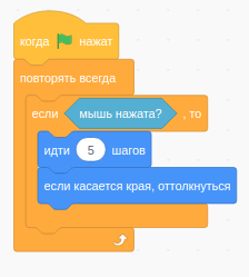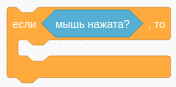 В данном случае нам нужен блок "мышь нажата?", который мы вставляем в поле после слова "если" в оператор ветвления "если … , то".