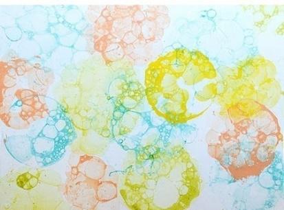 Рисование мыльными пузырями. | Для этого в растворы мыльной воды добавляются краски или пищевой краситель. Берем соломинку для коктейлей и начинаем пенить раствор, чтобы пузыри поднялись в стаканчике. Когда пена поднялась, берем плотную бумагу и прислоняем ее к мыльной пене. Таким образом, можно одним листом бумаги пройтись по всем цветам. Для творчества лучше брать плотную бумагу, а еще лучше бумагу для акварели. |