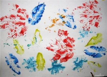 Отпечатывание листьев, и др. | Покрываем лист дерева красками одного цвета или разными цветами со стороны выпуклых прожилок, не оставляя пустых мест и не забывая окрашивать края. Затем лист дерева прикладываем окрашенной стороной к бумаге, стараясь не сдвигать его с места, иначе отпечаток будет нечётким, смазанным. Для получения отпечатка плотно прижимаем лист к бумаге. Затем берём листочек за черенок и осторожно снимаем его с поверхности бумажного листа. |