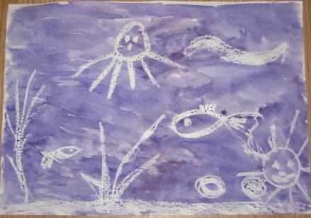 Рисование по воску. | Для рисования по воску потребуется акварель и воск (восковые карандаши или обыкновенные свечи). Изображается какой-нибудь несложный узор на листке бумаги, а затем закрашивается акварелью. Там, где был нанесен воск, краска не ляжет - и на цветном фоне останется прозрачный рисунок. |