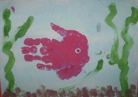 Пальчиковая живопись. | Делая отпечатки пальцев, ладоней на бумаге, можно создавать яркие образы животных, сказочных птиц, цветов и т.д. |