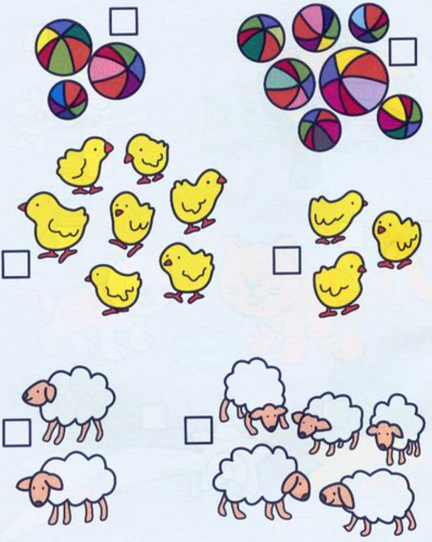 3. При формировании понятий «мало», «много» ребенку предъявляют 2 множества, резко контрастные по количеству (например, «мало» - 2-3 предмета, «много» - 10 и более предметов).