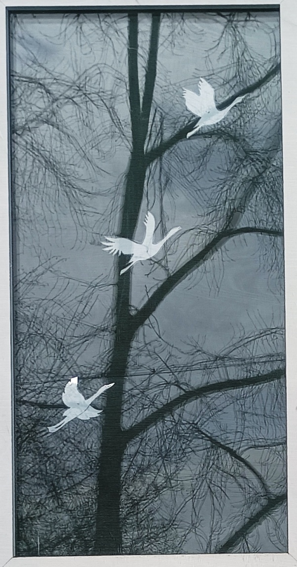 В средней группе окна украсиликомпозицией, которая включает в себя: памятную дату "9 мая", праздничные атрибуты: салют, цветы, Вечный огонь и журавлиный клин, уходящий в небо. Детей познакомили с большими красивыми птицами - журавлями. Журавли пролетают клином высоко-высоко и курлычут. Заслышав журавлиный крик, люди поднимают голову и вспоминают погибших на войне героев.