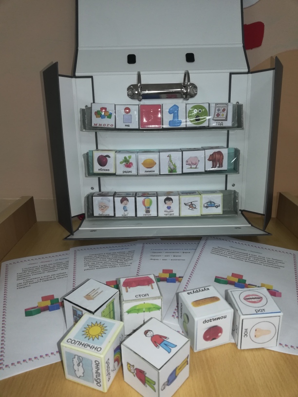 Мы должны научить детей последовательно, связно, грамматически правильно излагать свои мысли, рассказывать о различных событиях из окружающей жизни. Все мы знаем, что в современное время дети перенасыщены информацией, поэтому необходимо, чтобы процесс обучения для детей был занимательным, развивающим и в тоже время интересным. Чтобы достичь положительного эффекта, в формировании речевого развития, мы решили, совместно с учителем – логопедом и воспитателем комбинированной группы, использовать нетрадиционные формы работы с детьми, а именно , кубики, которые укомплектованы а игру «Чудо чемоданчик».